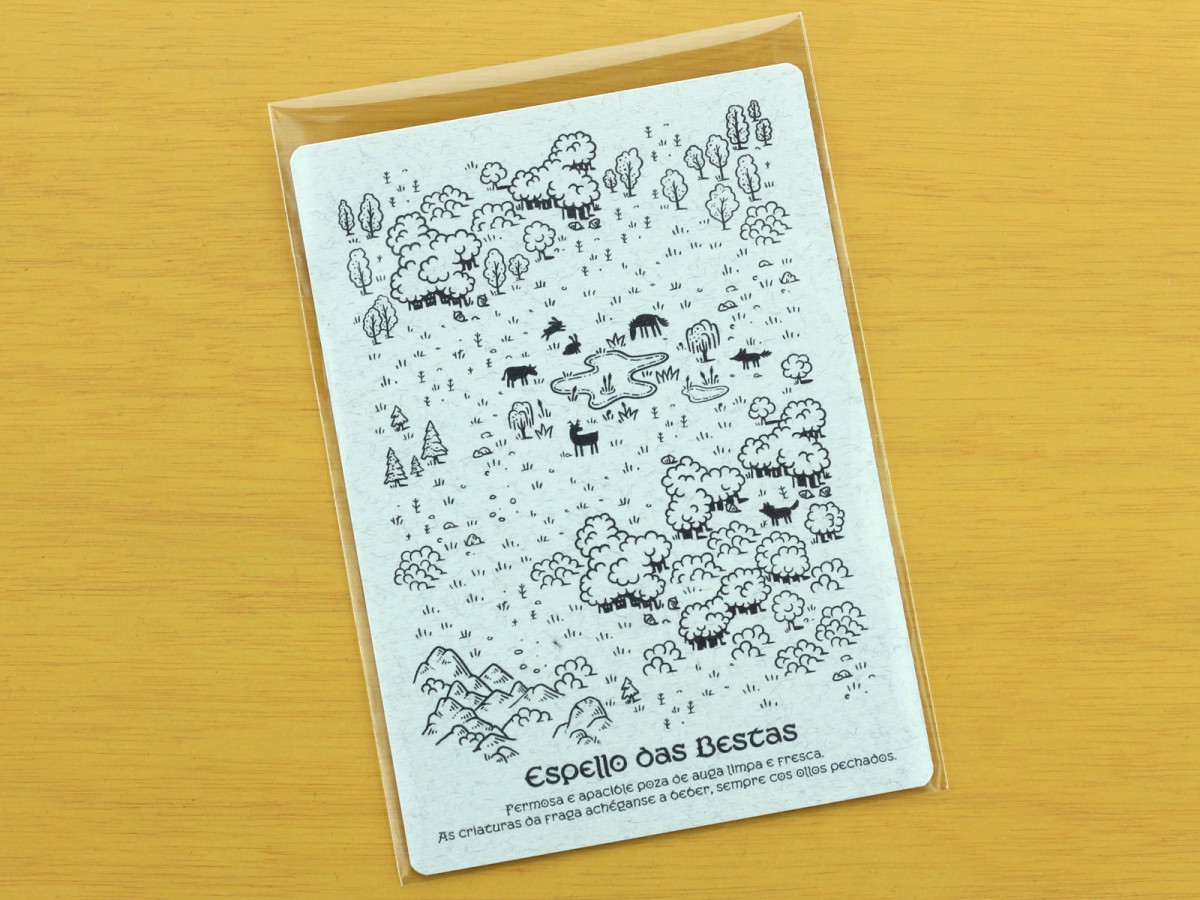 The postcards are protected in a transparent sleeve, sealed with a printed sticker indicating the name of the scene and the limited edition number (for example, “Penedo da Espiral – 12 of 100”).