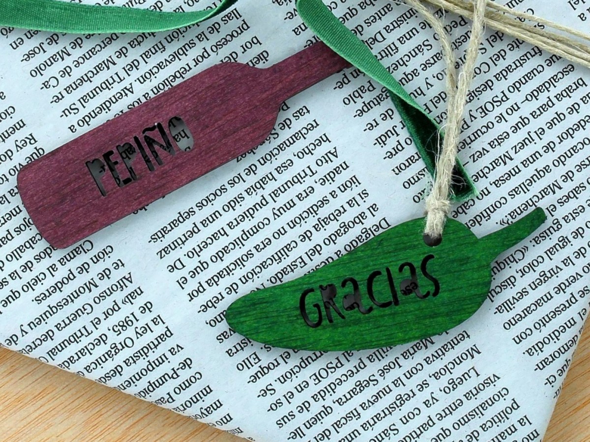 Wooden peppers with messages are ideal for decorating your gifts and giving an original presentation to your packages or homemade preserves.