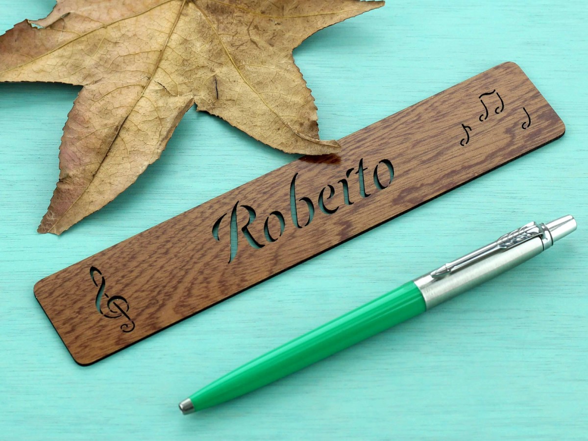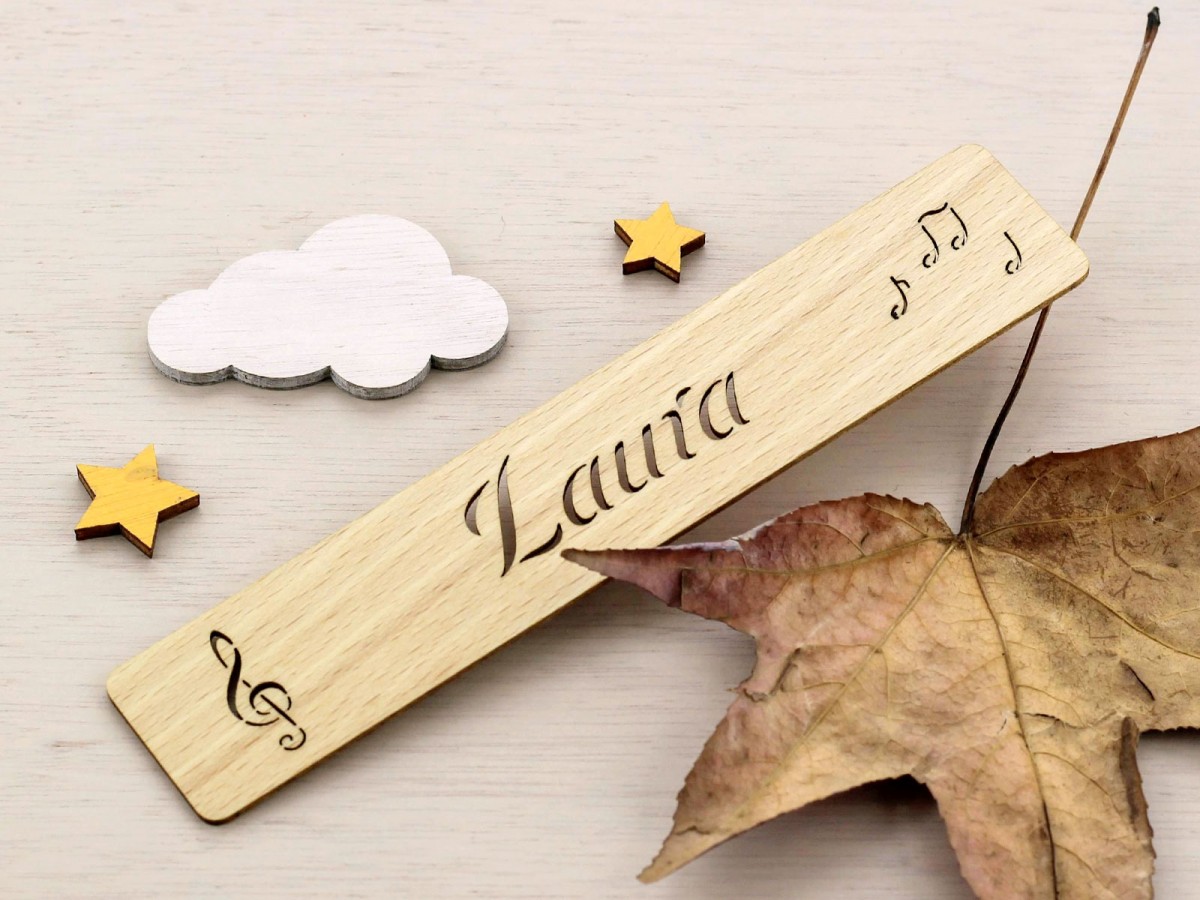 Personalized bookmark with the treble clef.